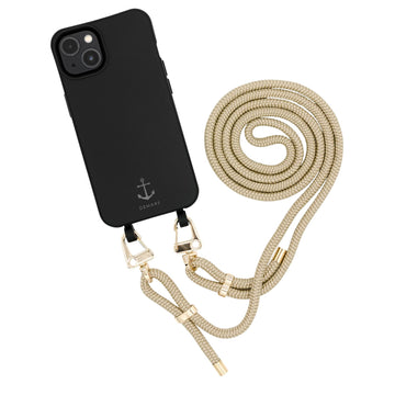 Flexibler Schutz für Dein Smartphone Das smart Case SCHWARZ mit austauschbarer beigefarbener Karabiner-Kordel Unser classic...