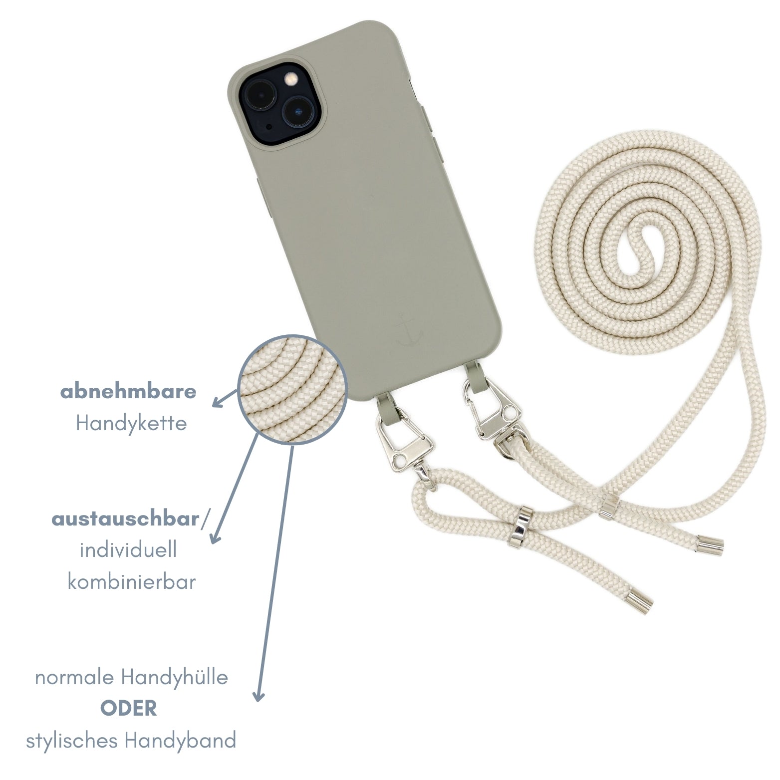 Smart Case TAUPEGRAU | Karabiner-Kordel CREME